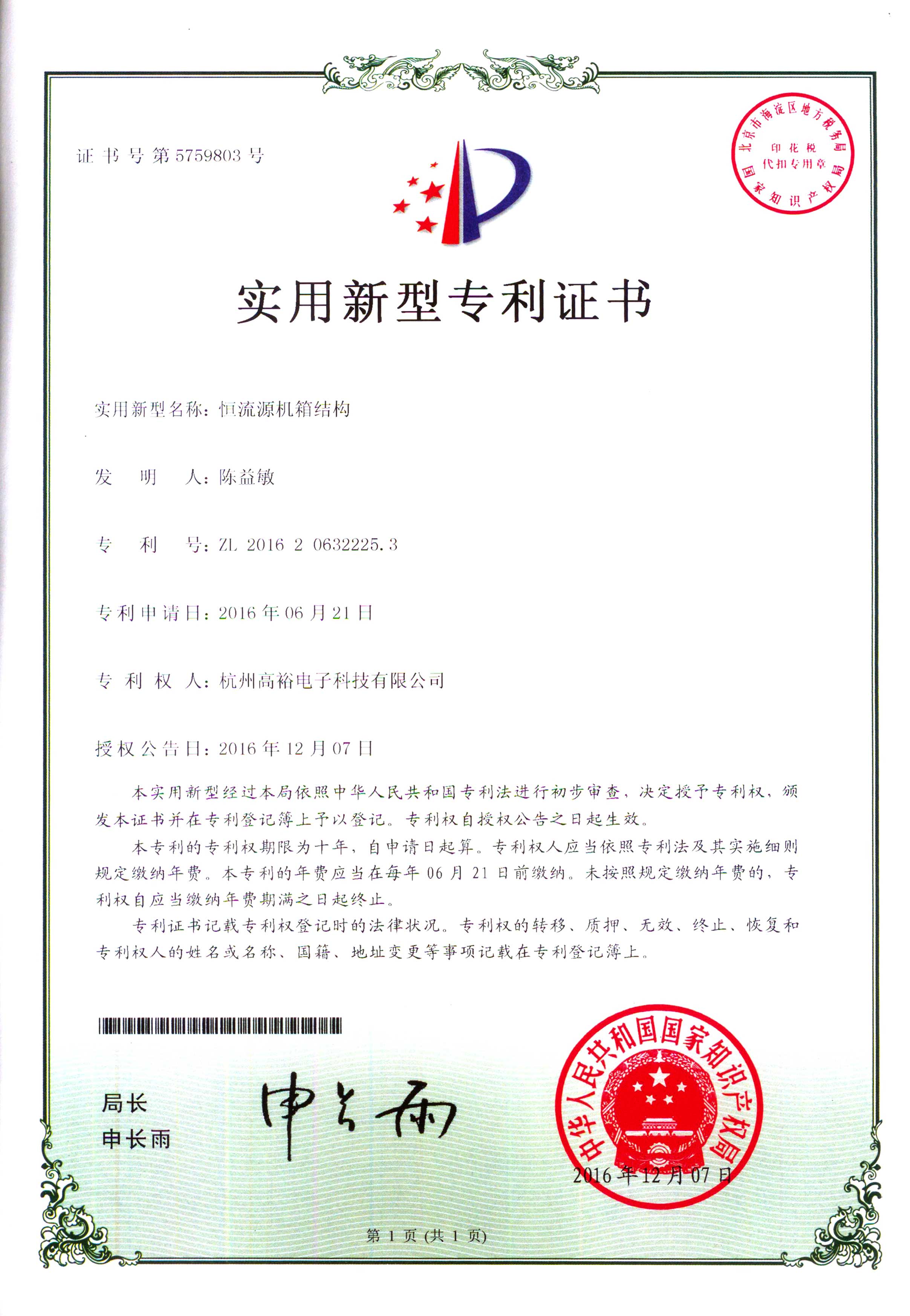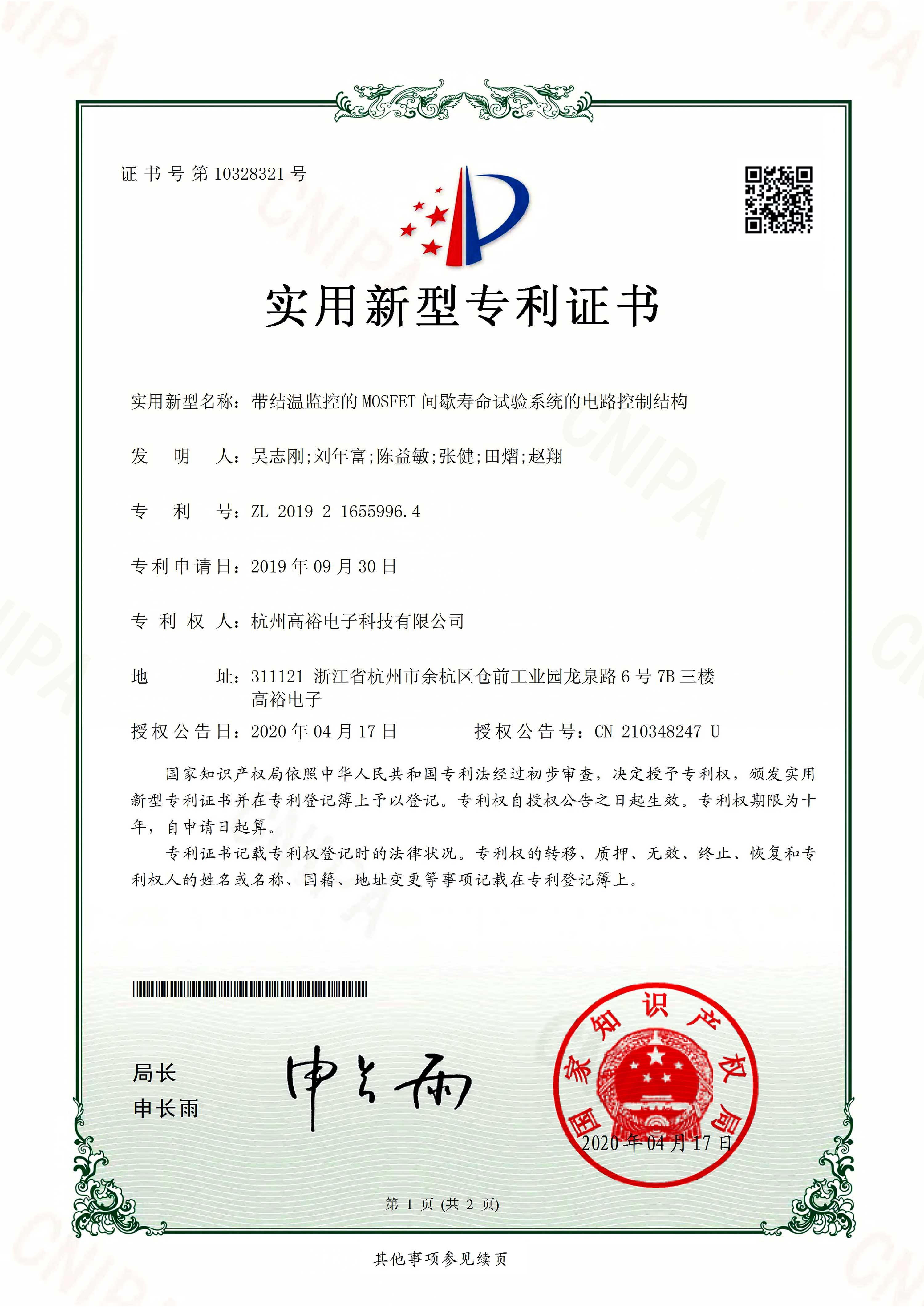 高新技術(shù)企業(yè)證書